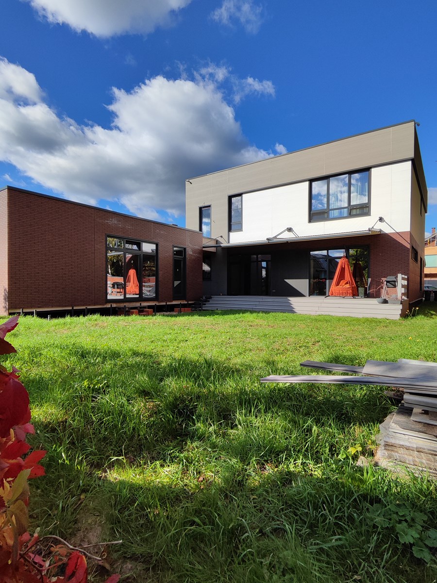 ЛОТ 4031125 Предлагается новый современный дом в Барвихе, готовый к проживанию! Уникальный авторский проект, состоящий из двух строений — основного дома 264 м² и гостевого дома-баня 50 м², расположенных на ровном участке 10 соток в деревне Рождественно. Дом построен из энергоэффективных керамоблоков Porotherm, облицован фиброцементными панелями Nichiha и KMEW, перекрытия — железобетон. Выполнен с использованием премиальных материалов и инженерных систем: магистральный газ, электричество 30 кВт, автономная вода, ЛОС большой мощности, видеонаблюдение, сигнализация с выездом Росгвардии. Полы с подогревом, вентиляция с рекуперацией, кондиционирование, «умное» управление. Дом полностью меблирован, техника — Bosch, Electrolux, DeLonghi. Просторные помещения, панорамное остекление, террасы, высокие потолки и гармония архитектуры создают атмосферу уюта и уединения. Поэтажное описание: 1 этаж — прихожая, гардеробная, помывочная для собак, санузел, кухня-столовая-гостиная с выходом на террасу, кладовая, гостевая спальня с санузлом, кабинет, котельная. 2 этаж — мастер-спальня с гардеробной и санузлом (сауна, душ), спальня с выходом на террасу и санузлом с ванной, кабинет-библиотека, постирочная, кладовая. Гостевой дом — баня с жилой зоной, полностью готов для эксплуатации.